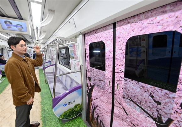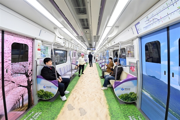 하남시는 벚꽃 개화기를 맞아 지하철 5호선 전동차 내부를 하남의 아름다운 명소로 가득 채운 하남 풍경열차를 선보이며 시민들의 일상에 따스한 온기를 더하고 있다.