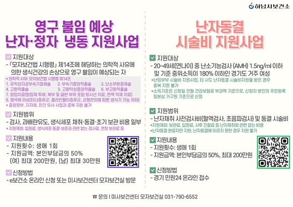 자세한 사항은 하남시 미사보건센터 모자보건실(☎031-790-6552)로 문의하면 된다.